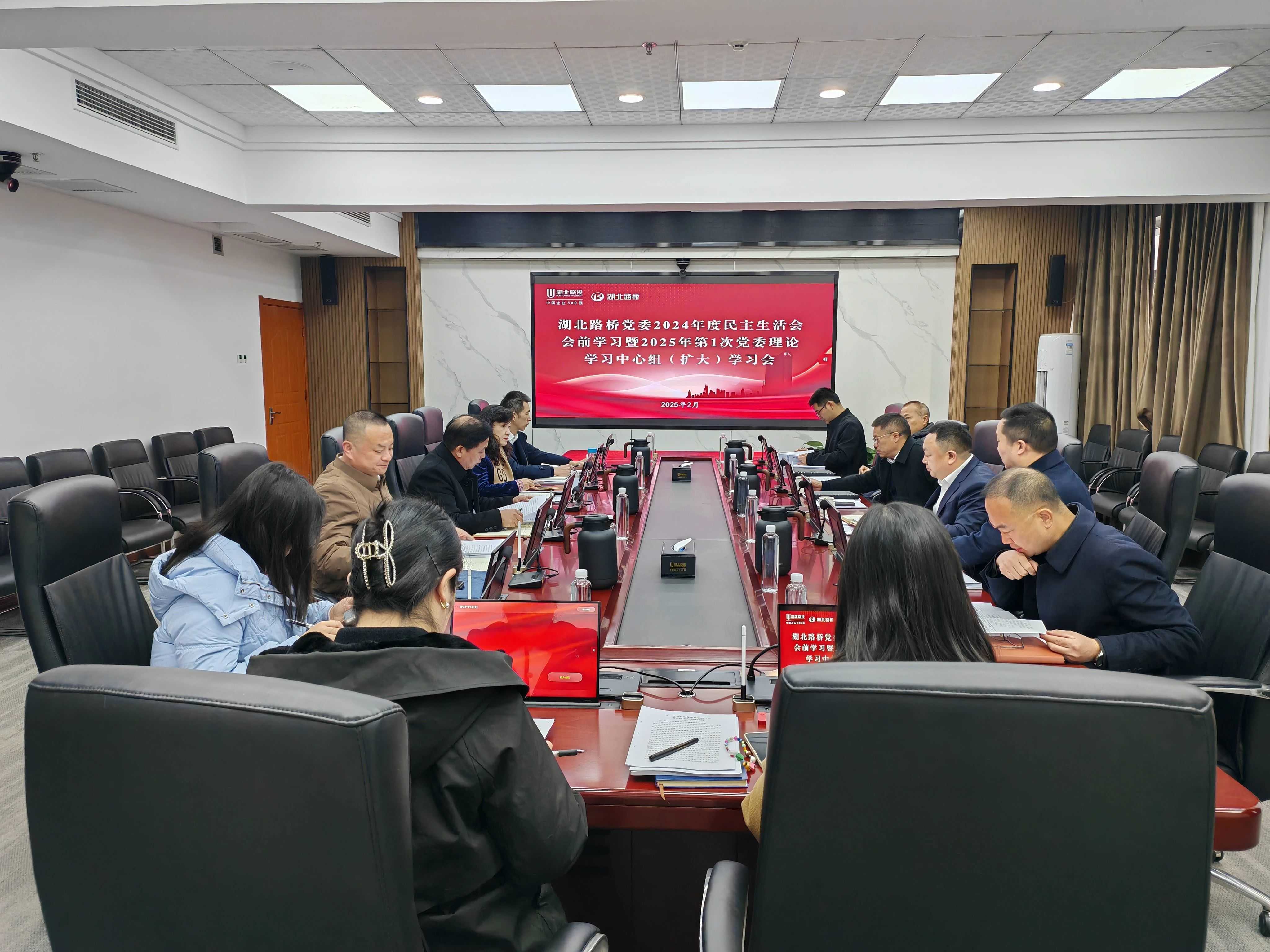 2月10日,湖北路橋黨委召開2024年度民主生活會(huì)會(huì)前學(xué)習(xí)暨2025年第1次黨委理論學(xué)習(xí)中心組(擴(kuò)大)學(xué)習(xí)會(huì),傳達(dá)學(xué)習(xí)習(xí)近平總書記關(guān)于全面加強(qiáng)黨的紀(jì)律建設(shè)、全面深化改革等內(nèi)容,增強(qiáng)以黨的自我革命引領(lǐng)公司改革發(fā)展的自覺性和堅(jiān)定性,打牢開好民主生活會(huì)的思想基礎(chǔ)。公司黨委書記、董事長潘新平主持會(huì)議并講話,黨委班子成員結(jié)合學(xué)習(xí)體會(huì)和工作實(shí)際作交流發(fā)言。