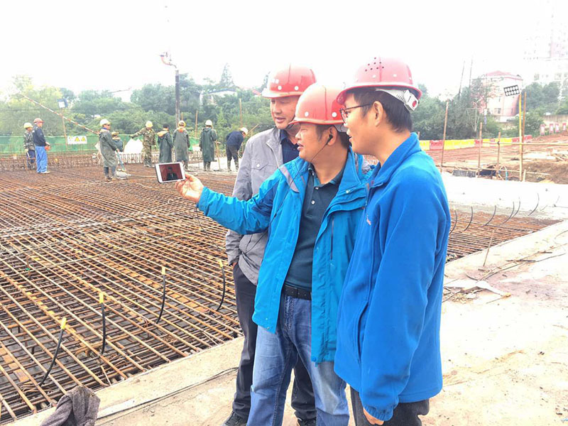 黃岡三臺河項目職工在施工現(xiàn)場利用手機觀看十九大開幕式