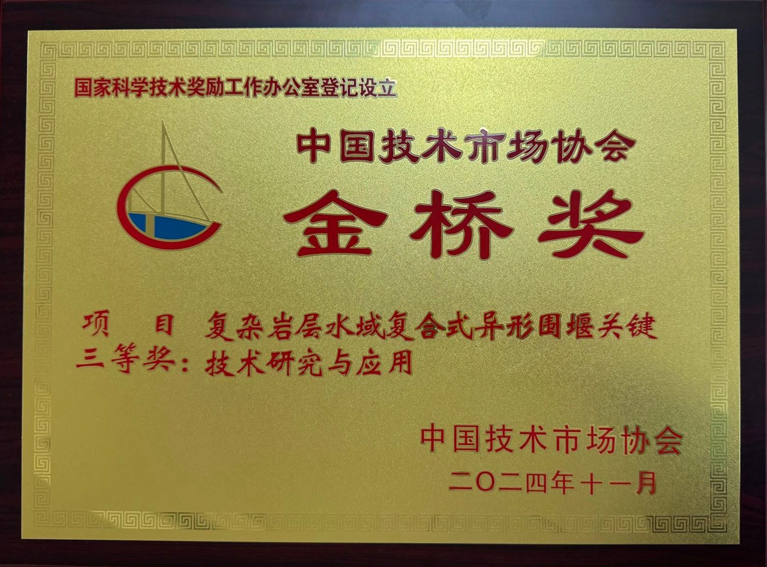 近日,第十二屆中國(guó)技術(shù)市場(chǎng)協(xié)會(huì)金橋獎(jiǎng)在北京召開(kāi)獎(jiǎng)勵(lì)表彰大會(huì),湖北路橋主持研究的“復(fù)雜巖層水域復(fù)合式異形圍堰關(guān)鍵技術(shù)研究與應(yīng)用”在近千個(gè)項(xiàng)目中脫穎而出,榮獲“金橋獎(jiǎng)”項(xiàng)目獎(jiǎng)三等獎(jiǎng)。這是公司連續(xù)兩屆斬獲該獎(jiǎng)項(xiàng),再次證明了湖北路橋在科技創(chuàng)新成果轉(zhuǎn)化和技術(shù)推廣應(yīng)用領(lǐng)域的卓越實(shí)力。