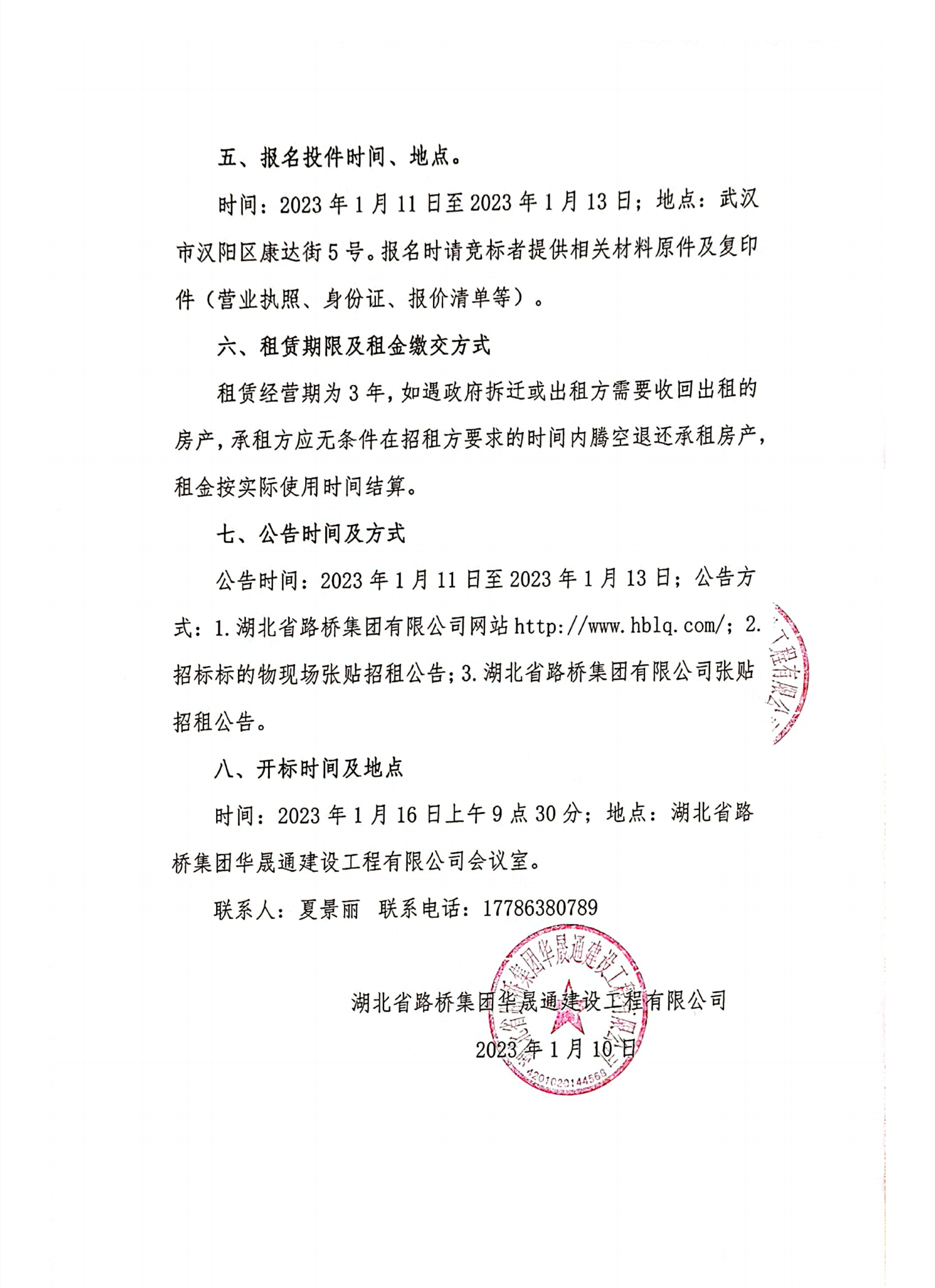 湖北省路橋集團華晟通建設工程有限公司自有房產(chǎn)招租公告